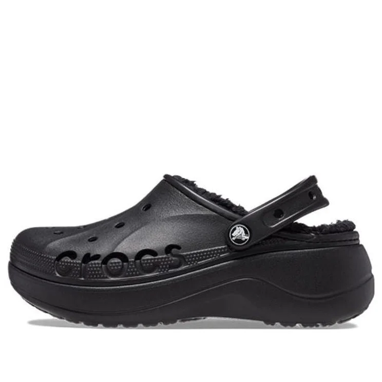 (WMNS) Crocs Baya Platform Lined Clog Sandals 'Black' 208708-001