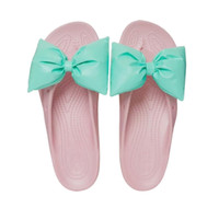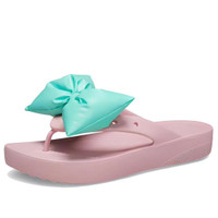 (WMNS) Crocs Classic Platform Bow Flip Flops 'Pink Teal' 210182-606