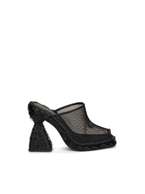 102mm Lunx sandals Highlights - Black - Mesh design - Square open toe - Slip-on style - Branded footbed - High sculpted heel - Braided raffia sole Imported Composition Sole: Recycled Leather 100%, Raffia 100% Lining: Calf Leather 100% Outer: Polyester 100% SIZE & FIT Measurement HEEL 4 in(10.1 cm)
