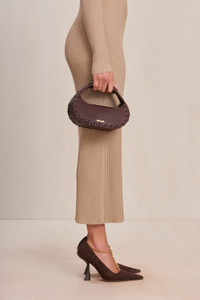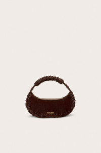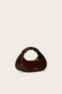A structured mini bag with a spherical top handle design and signature Cult Gaia logo detail. — Smooth leather and rattan — Whip stitch details, wrapped handle — Open design, no closure — Rounded edges COMPOSITION AND CARE 100% COW LEATHER