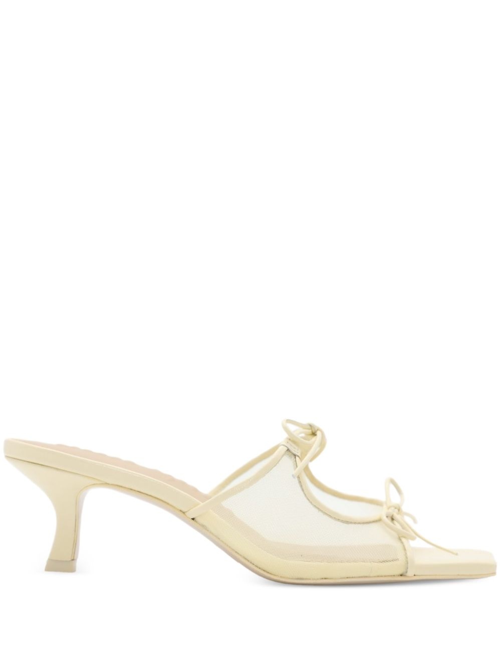 50mm Allegra bow-detail sandals Highlights - Cream - Mesh upper - Bow detailing - Square open toe - Kitten heel - Slip-on design Imported Composition Lining: Nylon 100%, Calf Leather 100% Outer: Nylon 100%, Sheepskin 100% Sole: Bonded Leather 100% SIZE & FIT Measurement HEEL 1.96 in(5 cm)