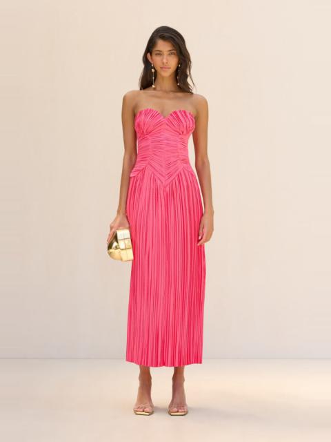 A plisse midi-length dress with a sweetheart neckline and a structured corset bodice for an ultra-slimming effect. — Sweetheart neckline — Corset bodice — Made from plisse — Central back zip — Back slit — Runs small, we recommend sizing up SIZE & FIT NOTES Model is 5'10" and is wearing a size 4 Runs small, we recommend sizing up COMPOSITION AND CARE 100% POLYESTER