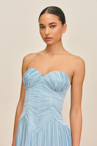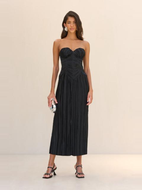 A plisse midi-length dress with a sweetheart neckline and a structured corset bodice for an ultra-slimming effect. — Sweetheart neckline — Corset bodice — Made from plisse — Central back zip — Back slit — Updated fit, runs true to size SIZE & FIT NOTES Model is 5'10" and wearing a size 4 COMPOSITION AND CARE 100% POLYESTER