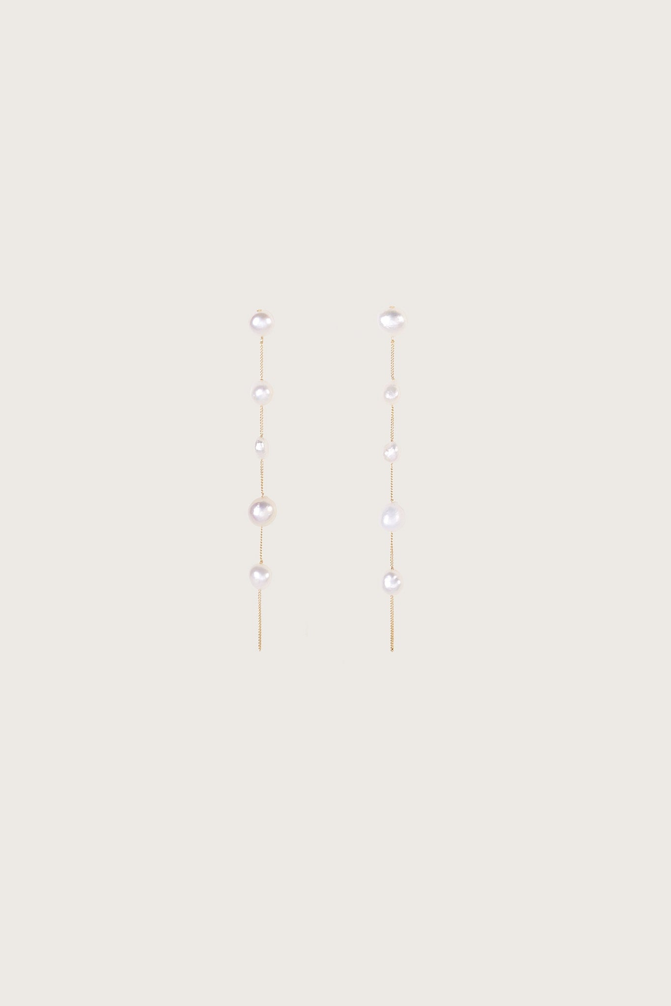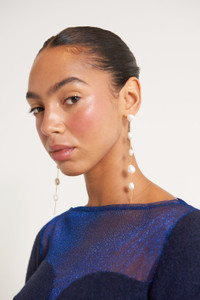 The Atum Earring has a stunning collarbone-grazing silhouette cast from brushed brass dotted with lustrous freshwater pearls. FIT NOTES Post earring Brass chain Pearl details throughout Lightweight COMPOSTION AND CARE Length: 4.75" Body: 100% Brass Trim: 100% Freshwater Pearls
