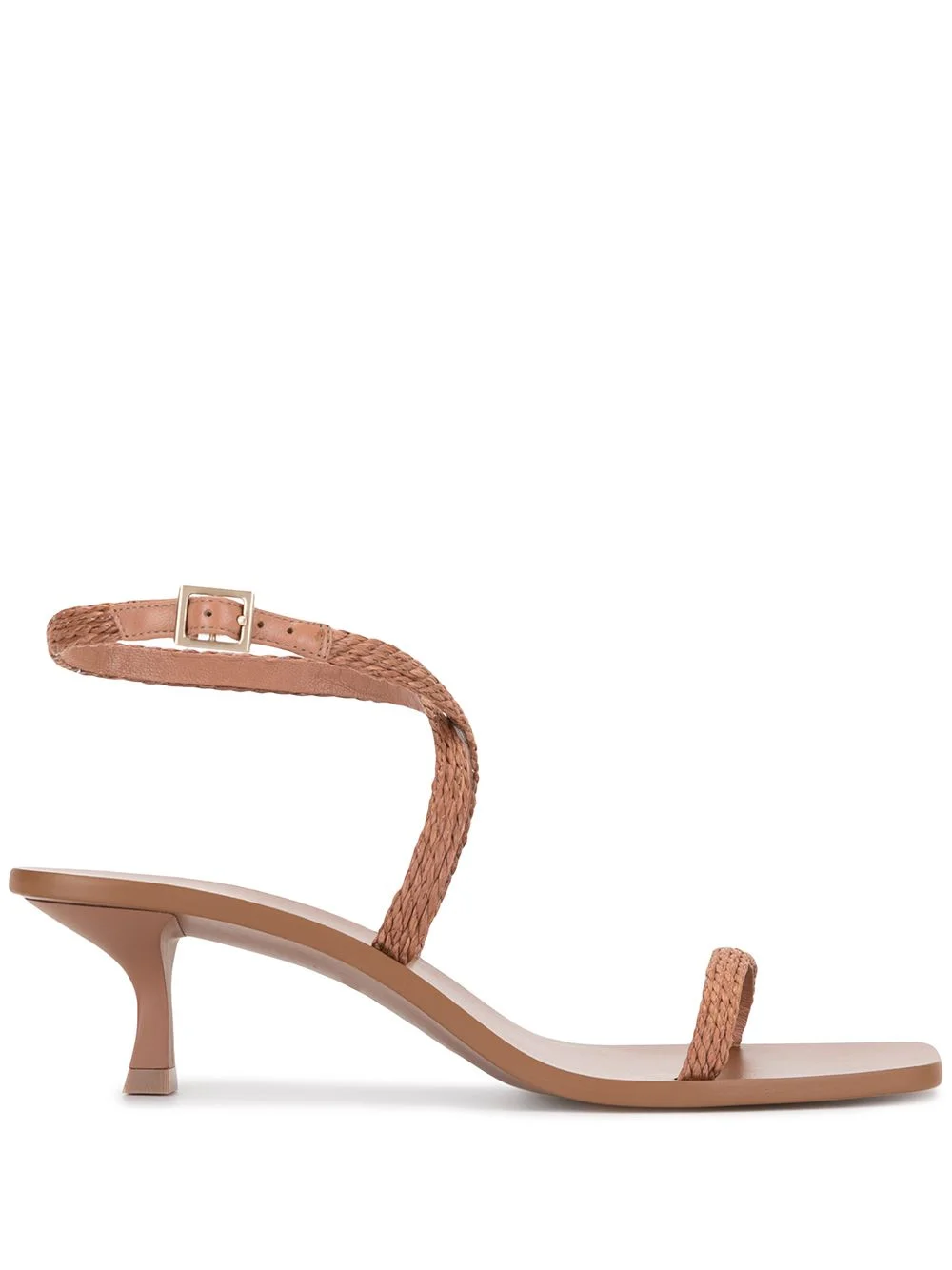 Banu kitten heel sandals Warm brown calf leather Banu kitten heel sandals from Cult Gaia featuring a square toe, a toe strap, woven leather effect, a branded insole and a low heel. Made in United Kingdom Composition Sole: Calf Leather 100%, Acrylonitrile Butadiene Styrene (ABS) 100% Lining: Leather 100% Outer: Polypropylene 100% SIZE & FIT Measurement HEEL 2.36 in(6 cm)