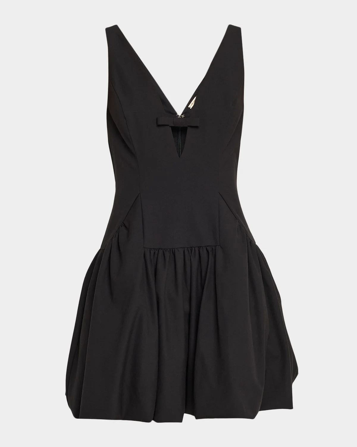 Crafted of stretch fabric, the "Blaise" mini dress from Cult Gaia is fitted through the bodice and features a central bow at the deep V neckline. Approx. 32.5"L from shoulder to hem V neckline Sleeveless Hem falls above the knee Fitandflare silhouette Invisible back zipper Polyester/viscose/elastane Dry clean Imported