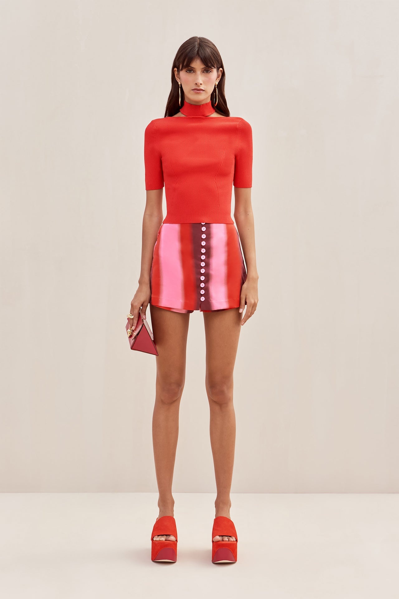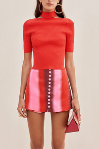 The Brianna Knit Top in Lollipop is guaranteed to become a go-to in your wardrobe. Her high neck and pencil sleeves exude elegance. A cutout starts at either side of the front neck and wraps around the collar to expose the upper back. Her fit, thin sleeves and vertical, ribbed knit create a slimming effect. FIT NOTES 65% Viscose 35% Nylon COMPOSTION AND CARE Most of our orders are shipped 24-48 hours from purchase pending availability and credit verification. Once your order is shipped, we estimate you will receive your order within 5-7 business days of its ship date. If you need your item(s) sooner, please select the expedited shipping option. Shipping times may vary, but rest assured we work our hardest to get you your order as quickly as possible. Please note all items noted as final sale are not eligible for exchange or return. We currently do not accept exchanges or returns for international customers at this time. If you have any questions, please be sure to reach out to hello@cultgaia.com .