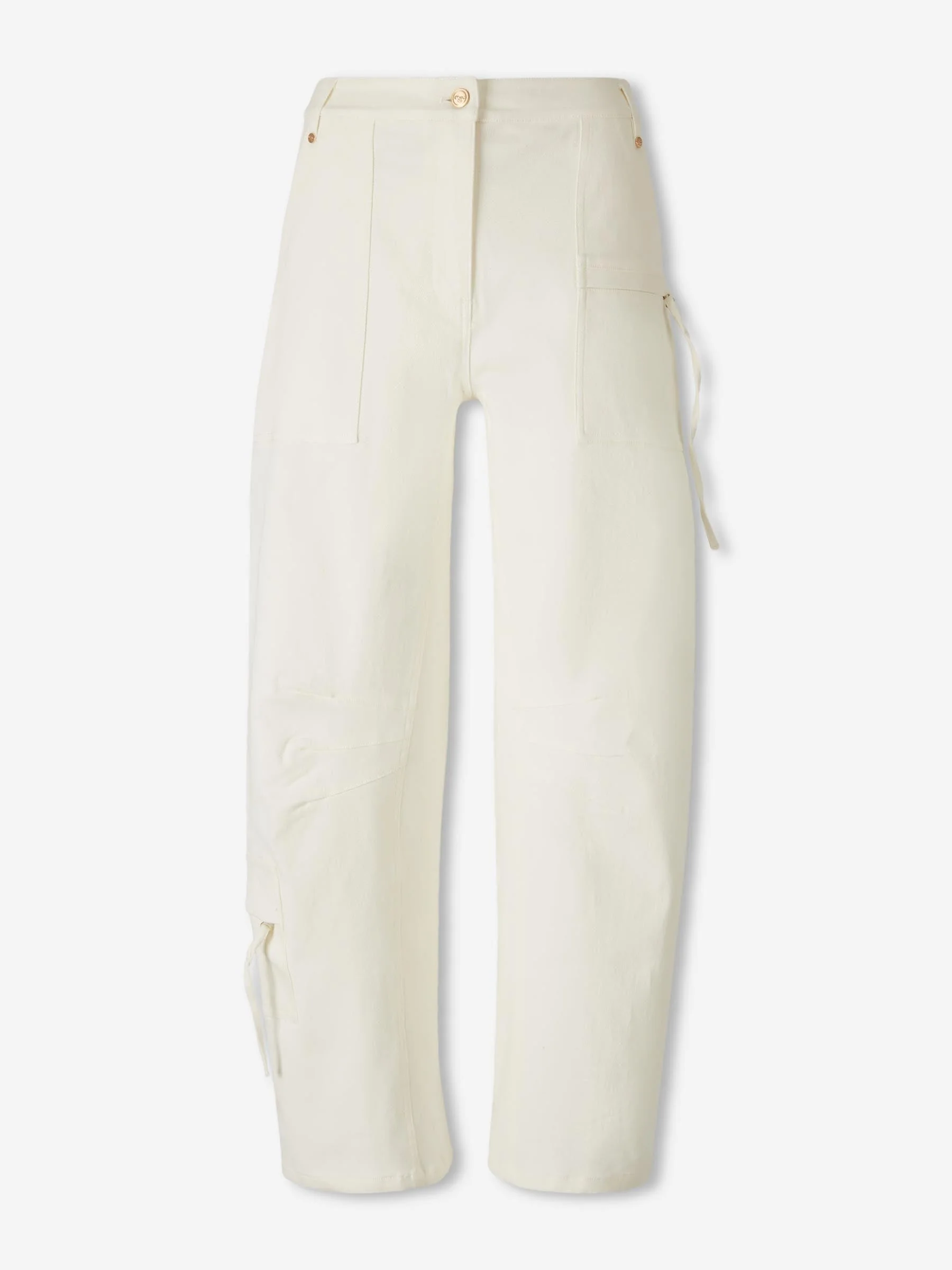 SKU: 761-003815 01 BRAND ID: PT28759CO3199 Cargo Pants Ewa Pants By Cult Gaia • Features multiple pockets at the front, back, and bottom • High waist with belt loops • Tone-on-tone stitching and darts at the knees • Loose fit • Made from cotton twill • Wide Pants • Barrel style • Front zipper and button closure Composition: 98% cotton, 2% elastane Italy