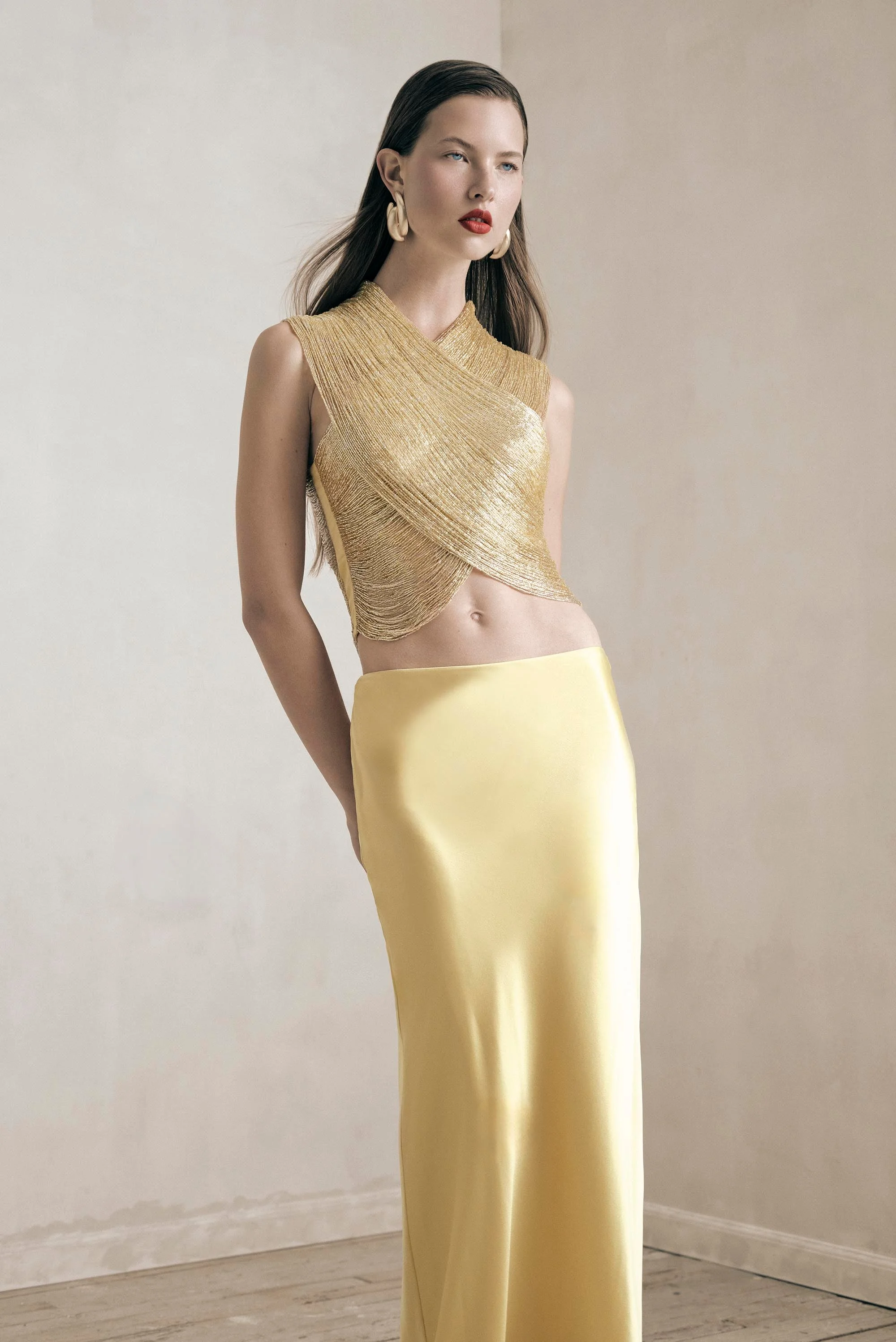 A bias cut maxi slip skirt crafted from silk with slight stretch. — Maxi length — Made from silk — Bias cut — Pull on style SIZE & FIT NOTES Model is 5'10" and wearing a size Small COMPOSITION AND CARE 92% SILK, 8% SPANDEX DRY CLEAN ONLY