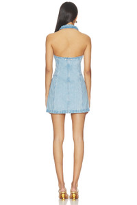 - 100% cotton - Made in Vietnam - Machine wash cold - Unlined - Exposed front zip closure - Midweight denim fabric - Halterneck styling - Revolve Style No. CULG-WD529 - Manufacturer Style No. DR35279DN2915