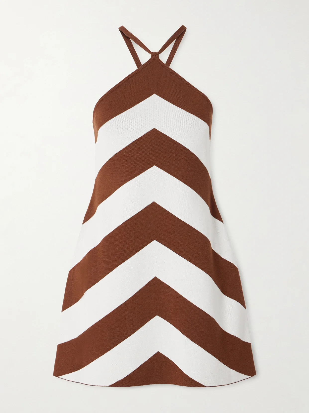 Cult Gaia's 'Nelson' dress has a striking chevron pattern that gives it a retro feel. It's made from a jacquard-knitted fabric and has slim halterneck straps that cross over at the back.