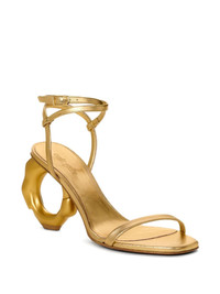 90mm leather heeled sandals Highlights - Gold-tone - Buckle-fastening ankle strap - Sculpted heel - Branded insole - Round open toe Imported Composition Lining: Leather 100% Outer: Sheepskin 100% Sole: Acrylonitrile Butadiene Styrene (ABS) 100% SIZE & FIT Measurement HEEL 3.54 in(9 cm)