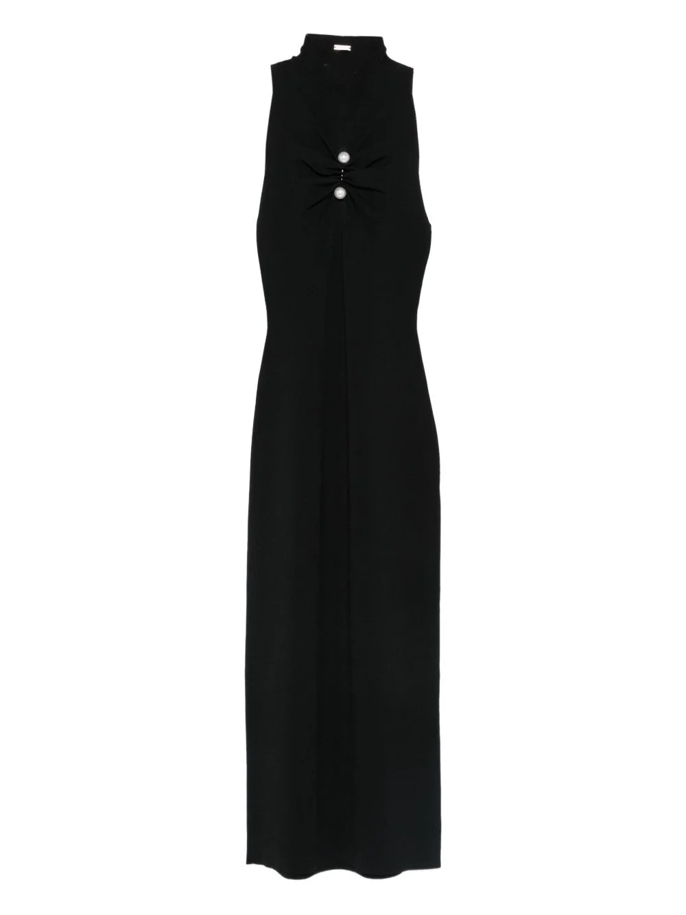 Collin dress Highlights - Black - High neck - Pearl embellishment - Sleeveless - Concealed zip fastening - Rear slit Imported Composition Viscose 65%, Nylon 35% SIZE & FIT Model measurements Height 5 ft 11 in(1.8 m) Bust/Chest 31.49 in(80 cm) Hips 36.61 in(93 cm) Waist 24.4 in(62 cm) Washing instructions Read Manufacturer Guidelines