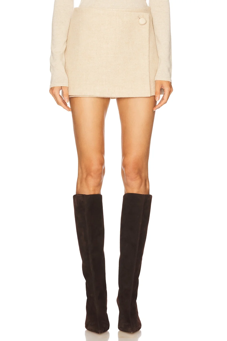 - Self: 100% wool Lining: 100% polyester - Dry clean only - Fully lined - Hidden back zip closure - Wrap around styling with button closure - Midweight melton fabric - Item not sold as a set - Skirt measures approx 13.5" in length - Revolve Style No. CULG-WQ64 - Manufacturer Style No. SK28891WO3188