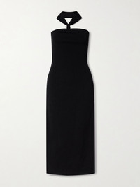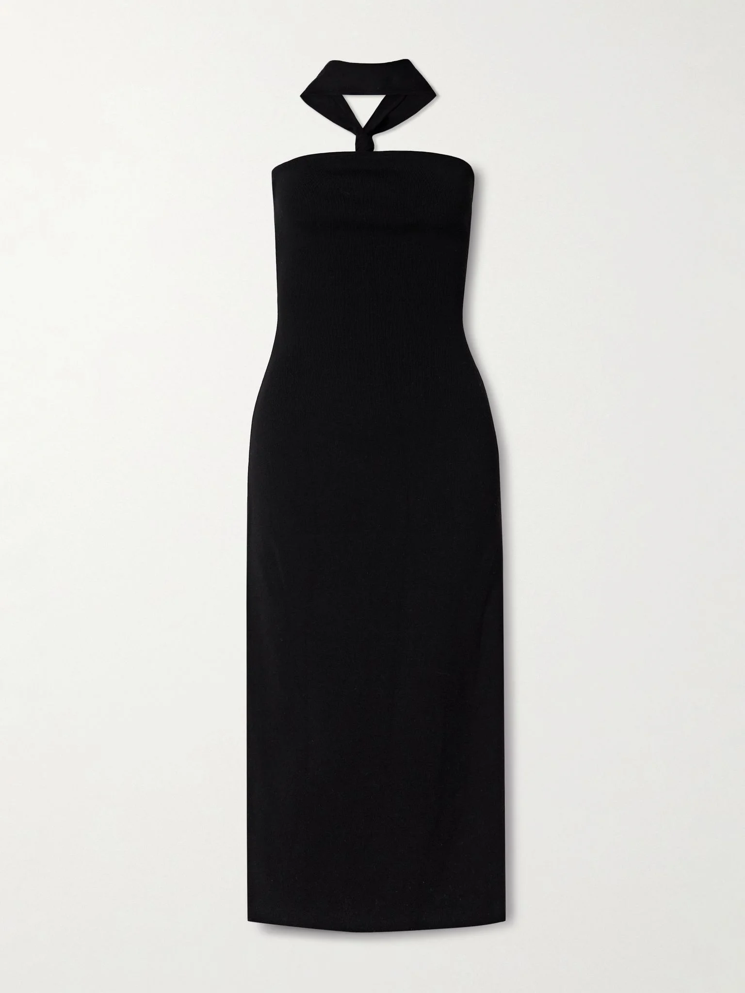 Cult Gaia's 'Erika' dress is designed with a reverse halterneck strap that's knotted at the back and appears like a scarf from the front. It's made from stretch-knit for a close, figure-hugging fit enhanced by the subtle ribbed finish. Style yours with one of the brand's sculptural clutches. Size & Fit - Fits true to size, take your normal size - Designed for close fit - Lightweight knit - Model is 180cm/ 5'11" and is wearing a size Small Model measurements: - Bust: 85cm/ 33.5" - Waist: 62cm/ 24.5" - Hip: 91cm/ 36" Details & Care - Black stretch-knit - Slips on - 65% viscose, 35% nylon