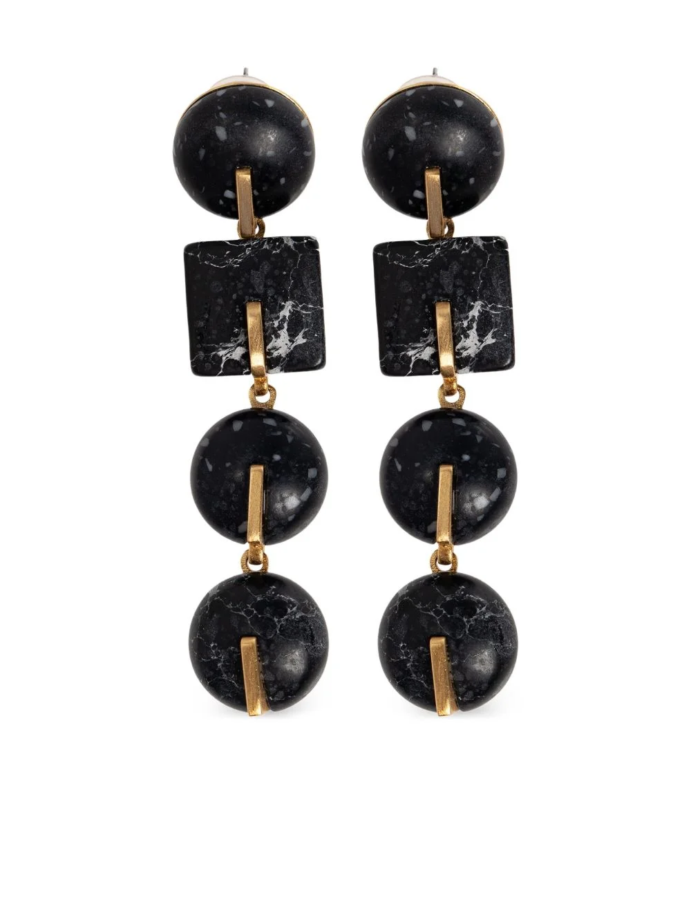 geometric drop earrings Highlights - Black - Geometric design - Drop style - Gold-tone hardware - Post-back fastening - These earrings come as a pair. Imported