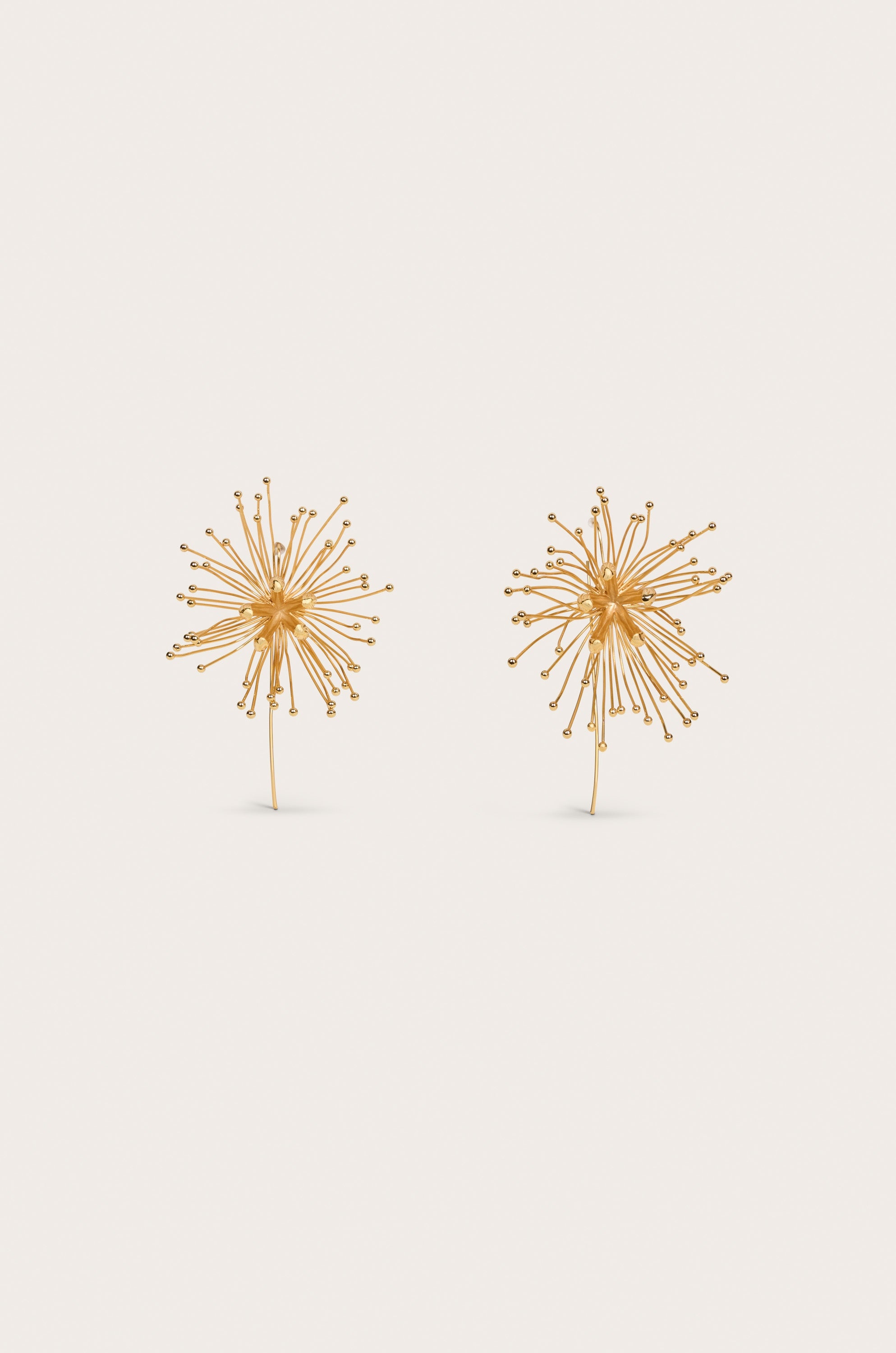 A true objet d'art - gold toned threader earrings inspired by dandelion. — Threader style — Gold toned — Objet d'art COMPOSITION AND CARE 100% BRASS