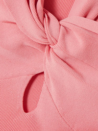 Dawnette cutout knotted ribbed-knit midi dress Bright pink