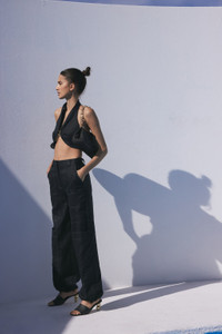 The Diem Top pairs elegance and seduction. This halter crop top is made of heavy linen and fully lined to provide the ultimate play of coverage and openness. Hardware detailing at the front and an elastic back provide wonderful support. We recommend sizing up for larger bust sizes/more coverage. SIZE & FIT NOTES Model is 5'10" and wearing a size Small Dry Clean Only We recommend smaller bust sizes to size down. We recommend sizing up if you prefer fuller bust coverage. COMPOSITION AND CARE 100% Linen
