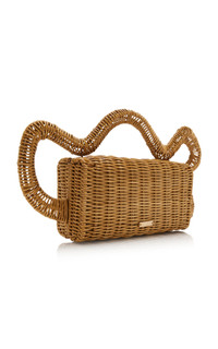 The LA-based brand is a verifiable destination for cult-worthy (and well-priced) accessories. The Elsa is a rattan rectangular clutch with abstract wave top handle. PRODUCT DETAILS - Magnetic fastening - Composition: 100% rattan; Lining: 80% polyester, 20% cotton - Imported
