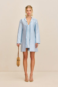 A lightweight oversized blazer crafted in a stunning satin silk fabric with subtle sheen. — Oversized silhouette — Silk fabrication — Bracelet sleeve — Comes with adjustable sash — Wear as a set with Mariza Dress SIZE & FIT NOTES Model is 5'10" and wearing a size S COMPOSITION AND CARE 100% SILK