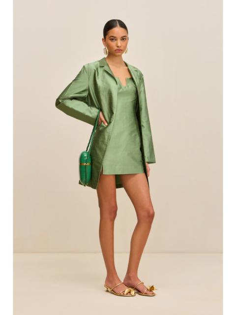 A lightweight oversized blazer crafted in a stunning satin silk fabric with subtle sheen. — Oversized silhouette — Silk fabrication — Bracelet sleeve — Comes with adjustable sash — Wear as a set with Mariza Dress SIZE & FIT NOTES Model is 5'10" and wearing a size S COMPOSITION AND CARE 100% SILK