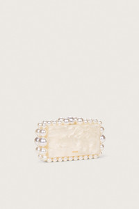 The Eos Box Clutch is an update from our loved Eos Box Bag. This clutch has beads surrounding the edges of the bag for a unique Gaia touch. Our classic Cult Gaia signature is printed in gold on one side of the clutch. SIZE & FIT NOTES Fits iPhones up to iPhone 11 Top clasp closure Unlined Fragile - do not drop, handle with care COMPOSITION AND CARE 9" x 5" x 2" Weight: 68.6g Body: 100% Acrylic