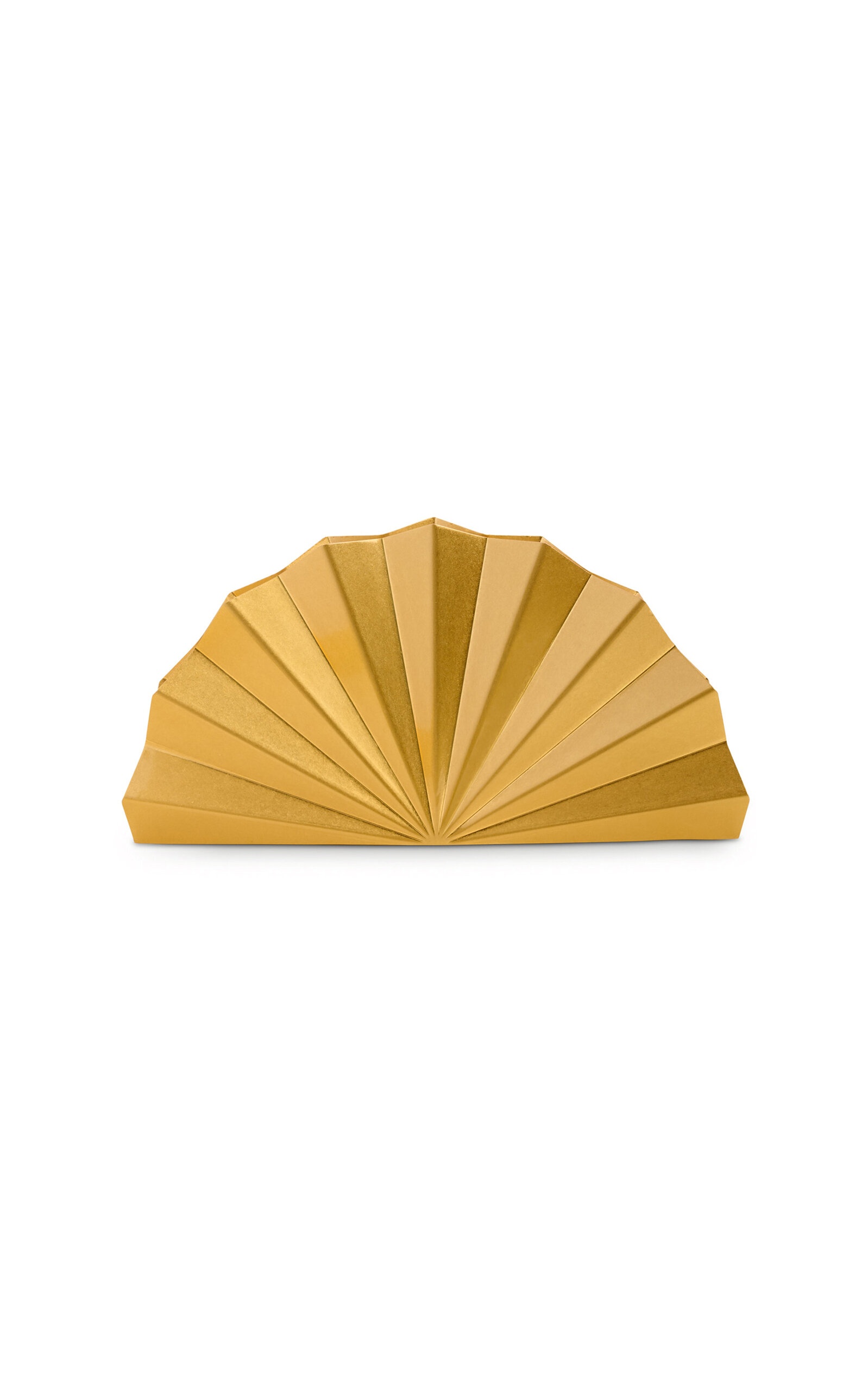 L.A.-based Jasmin Larian Hekmat, the brains behind the cult-favorite Ark bag, returns with more ultra-desirable accessories in her Cali-infused, bohemian style. A sculptural clutch that resembles a rising sun crafted in antique brass plated metal. PRODUCT DETAILS - Magnetic fastening - Composition: antique brass - Imported