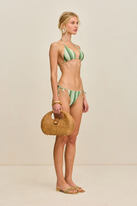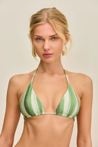 A classic triangle bikini top in an eye catching green stripe pattern. — Double lined — Adjustable ties — Shimmer tricot — Padded SIZE & FIT NOTES Model is 5'10" and wearing a size S COMPOSITION AND CARE 80% POLYAMIDE 20% ELASTANE