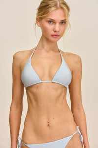 A classic triangle bikini top in an eye catching blue hue. — Double lined — Adjustable ties — Shimmer tricot — Padded SIZE & FIT NOTES Model is 5'10" and wearing a size S COMPOSITION AND CARE 80% POLYAMIDE 20% ELASTANE
