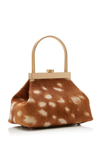 L.A.-based Jasmin Larian Hekmat, the brains behind the cult-favorite Ark bag, returns with more ultra-desirable accessories in her Cali-infused, bohemian style. 'Estelle' is a vintage-inspired calf hair mini bag with a gold-toned top handle. PRODUCT DETAILS - Clasp fastening - Composition: calf hair; Detail: brass-plated metal - Designer color: Cervino - Imported