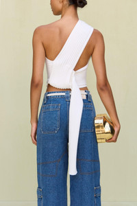 An asymmetrical knit top crafted in opaque cotton with a wrapped strap detail in the back. — Cotton knit — Cropped length — One shoulder neckline — Wrapped strap detailing COMPOSITION AND CARE 100% COTTON