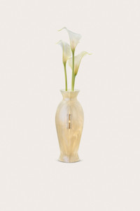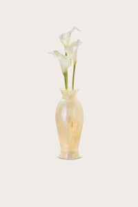A marbled acrylic vase of calla lilies that opens for storage and functions as wearable art. Handmade with love, each Calla flower is unique. — Objet d'art — Marbled acrylic vase — Hinge opening — Magnetic closure — Cannot fit an iPhone SIZE & FIT NOTES Cannot fit a Phone 3.54" W x 3.54" H x 15.75" L COMPOSITION AND CARE 100% ACRYLIC, TRIM: 100% PU, 100% PVC