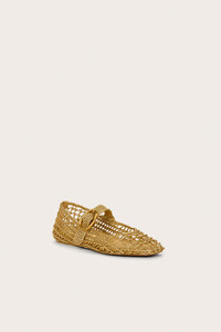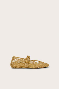 A unique ballet flat with hand-knotted open netting and a gold abstract side buckle. — Metallic leather — Gold-toned abstract buckle — Adjustable strap — Hand-knotted leather netting COMPOSITION AND CARE UPPER: 100% SHEEP LEATHER, OUTSOLE: 100% RUBBER