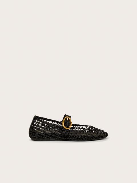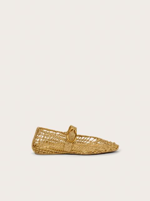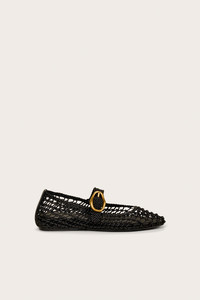 A unique ballet flat with hard knotted open netting and a gold abstract side buckle. — Black leather — Gold-toned abstract buckle — Adjustable strap — Hard knotted leather netting COMPOSITION AND CARE UPPER: 100% SHEEP LEATHER, OUTSOLE: 100% RUBBER