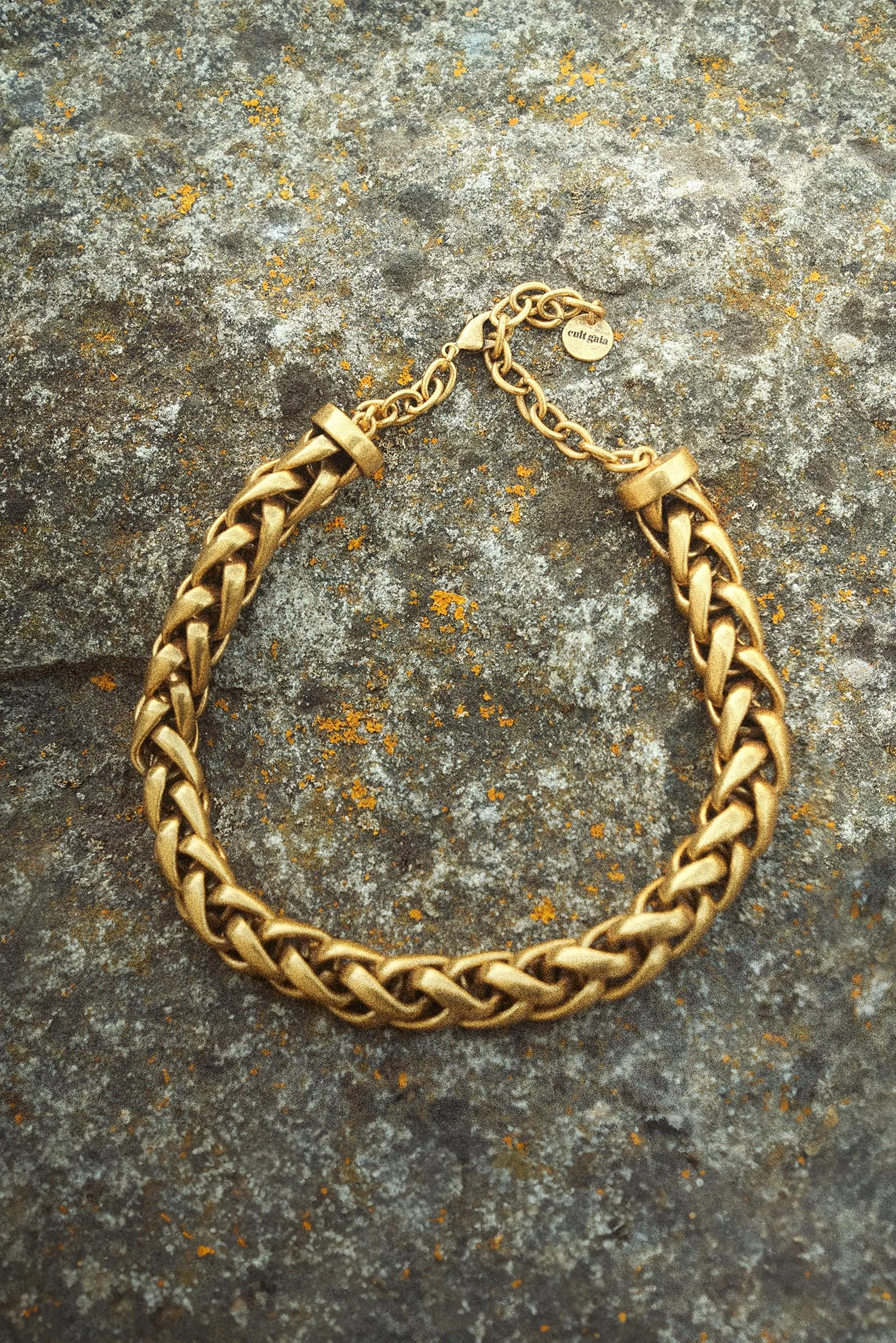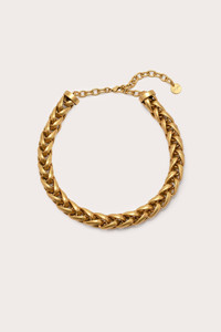 An elegantly braided choker inspired by fields of wheat. — Choker silhouette — Brass — Designed to resemble wheat — Clasp closure SIZE & FIT NOTES 9.45" L COMPOSITION AND CARE 98% BRASS; 2% STEEL Spot clean with microfiber cloth. Avoid contact with liquids to prevent tarnishing.