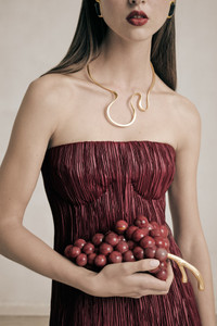 A delicate acrylic clutch with a brass stem that forms a cluster of grapes that opens on a hinge for storage. — Delicate, handle with care — Brass stem — Side hinge opening — Does not fit an iPhone SIZE & FIT NOTES 4.72" W x 5.51" H x 10.24" L COMPOSITION AND CARE 100% RESIN; HW: 100% ZINC ALLOY Gently wipe with a soft cloth; for deeper cleaning, use mild soap and water, then dry immediately. Handle with care.