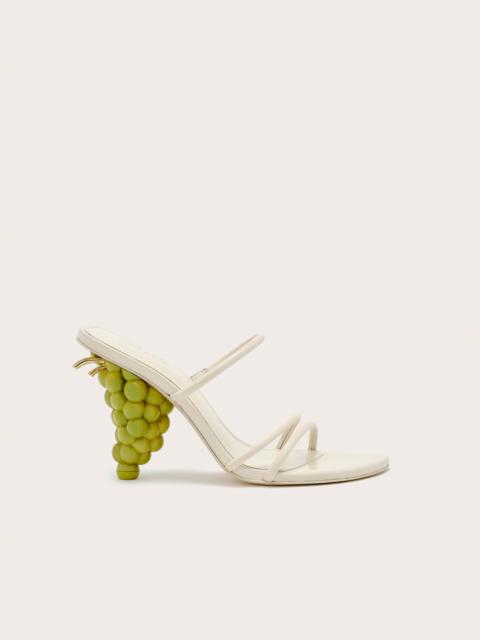 A playful sandal featuring a sculptural heel resembling a bunch of grapes. — Leather footbed — Sculptural grape heel — Leather toe straps — 3.74" heel height SIZE & FIT NOTES 95MM HEEL HEIGHT COMPOSITION AND CARE UPPER: 100% GOAT LEATHER, OUTSOLE: 100% RECONSTITUTED LEATHER, HEEL: 100% ABS