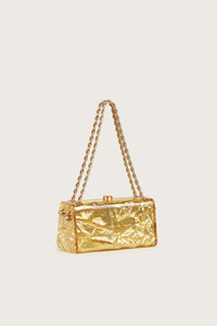Created from a pearlized marbled acrylic shell, the shoulder bag is finished with a scooped front lock closure on the top. The rectangular shape of the Hajar Shoulder Bag is embellished by twisting, gold-toned cording hardware shoulder straps. A redefined classic, the Hajar Shoulder Bag will be your new go-to. COMPOSITION AND CARE 40% Acyrlic, 40% Polyester, 20% Nylon 7.6" x 3.3" x 3.9"