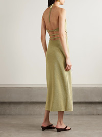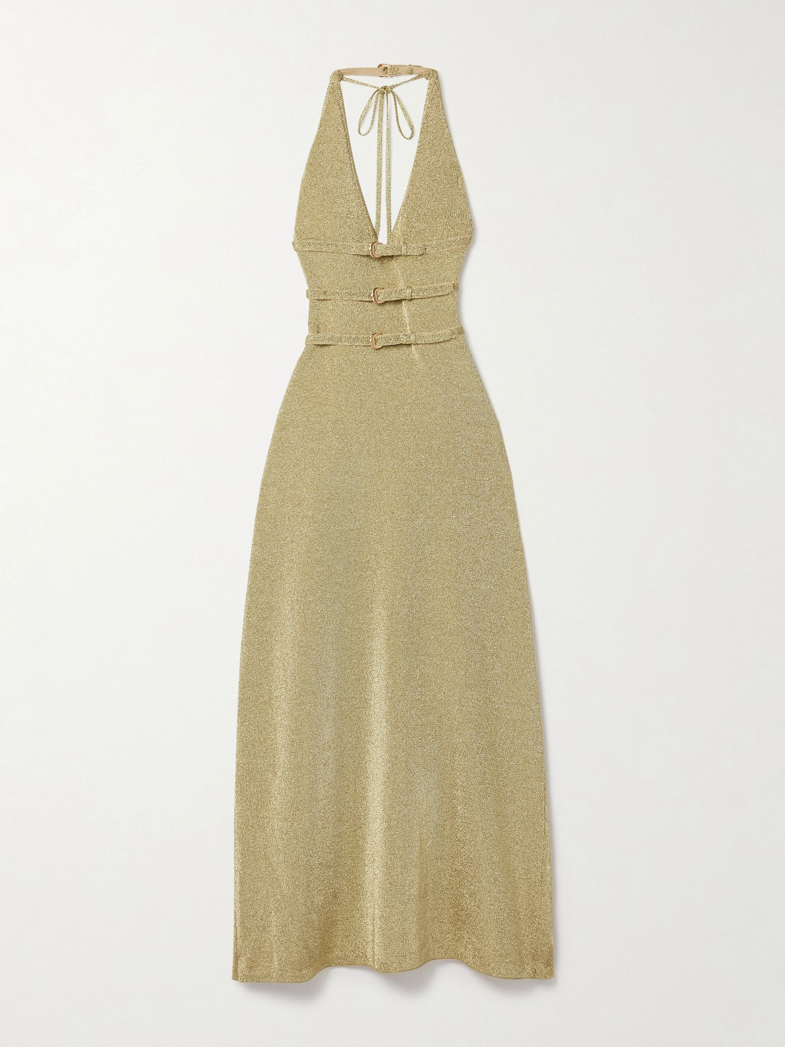 Evaleigh buckled metallic knitted halterneck midi dress Gold