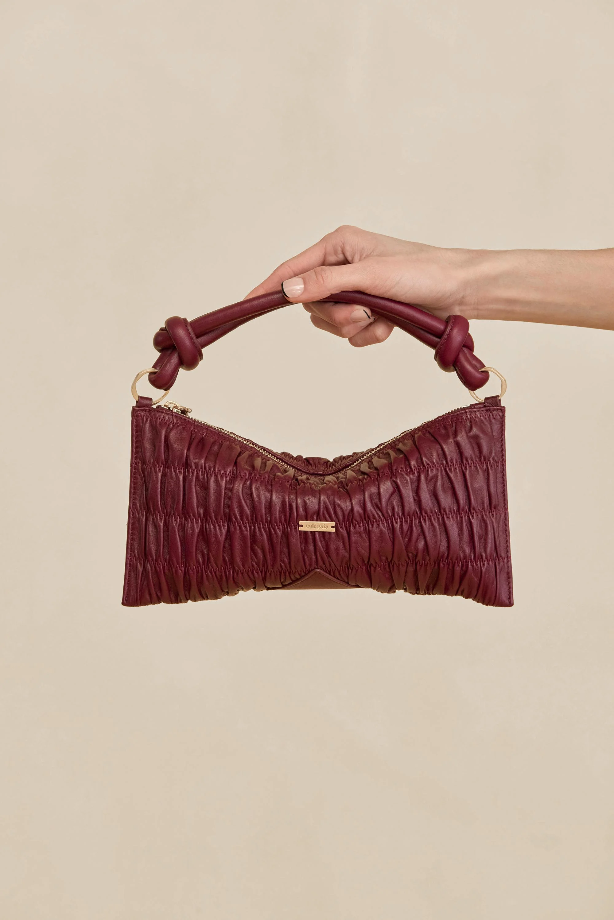 A classic nano sized bag designed in smocked leather that sits as a relaxed silhouette on your shoulder. — Smocked leather — Gold oblong ring hardware — Zipper closure — Made in Italy SIZE & FIT NOTES 1.57" W x 5.51" H x 11.02" L COMPOSITION AND CARE 100% SHEEP LEATHER; LINING: 100% POLYESTER; HW: ZINC ALLOY