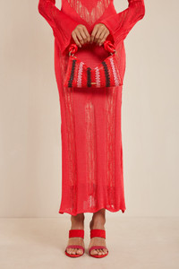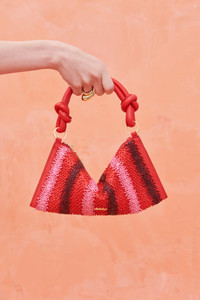 Hera Nano is an ultra-petit bag rendered in colored beads in this season’s signature Lollipop hues. This classic design exudes femininity and grace with a knotted shoulder strap and a gorgeously slouchy silhouette. The frosted handheld bag is the perfect addition to add some Gaia sparkle to your life. Please note this size is much smaller than the Mini. FIT NOTES WIDTH: 11.00" LENGTH: 5.50" Sewn by hand, all bags will feature some variance Smooth Leather Body Metal Logo Plaque Front Bottom Center Zipper Closure Lined Logo Zipper Pull COMPOSTION AND CARE 100% Sheep Leather Lining: 90% Polyester 10% Polyurethane Trim: 100% Plastic