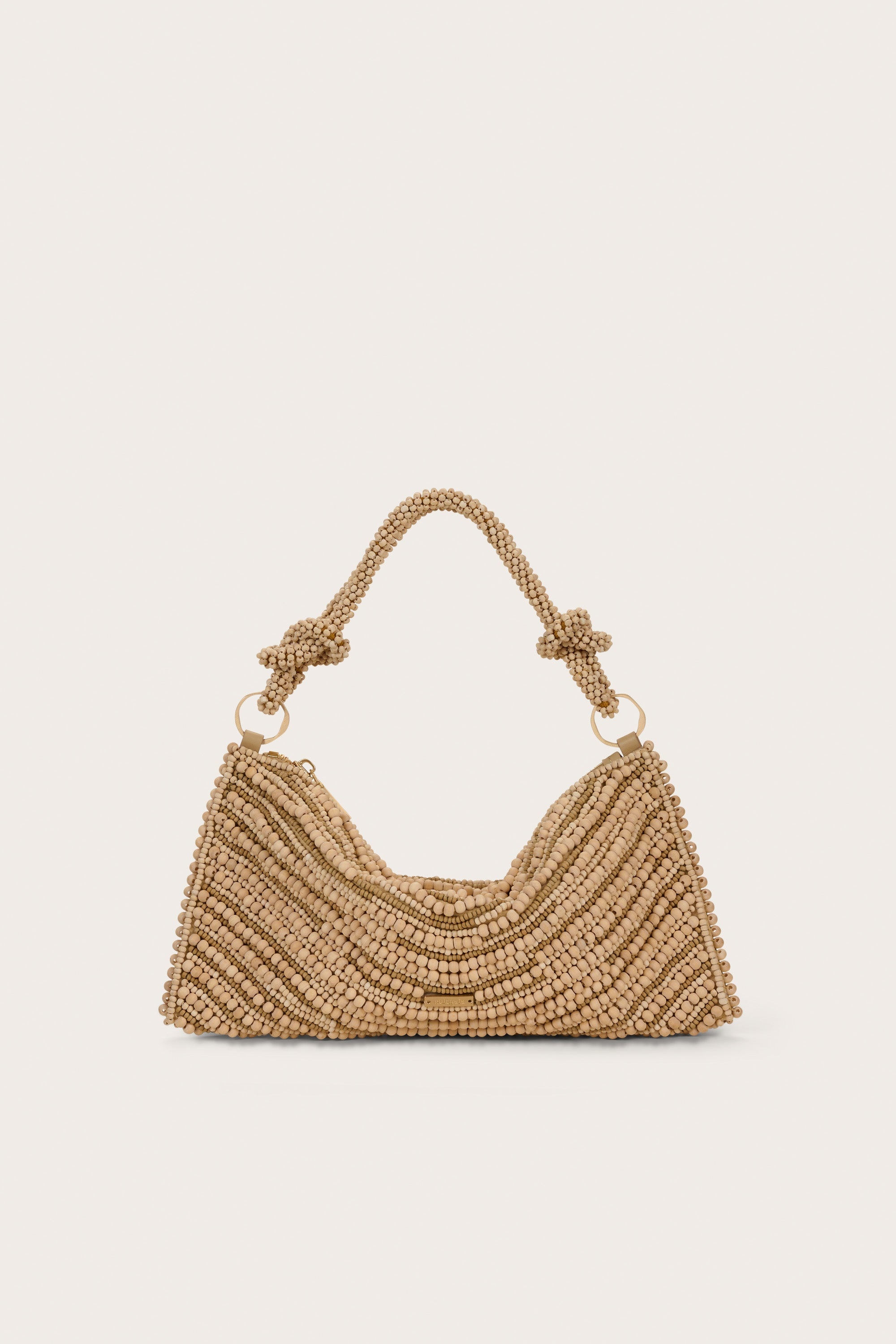 Preorder - Estimated Ship Date is Between March 7th and March 21st A classic nano sized bag designed in a natural wooden beads that sits as a relaxed silhouette on your shoulder. — Hand beaded — Gold oblong ring hardware — Zipper closure — Wood beaded top handle COMPOSITION AND CARE 100% WOOD BEADS, TRIM: 100% COW LEATHER, LINING: 100% COTTON, HW: 100% ZINC ALLOY