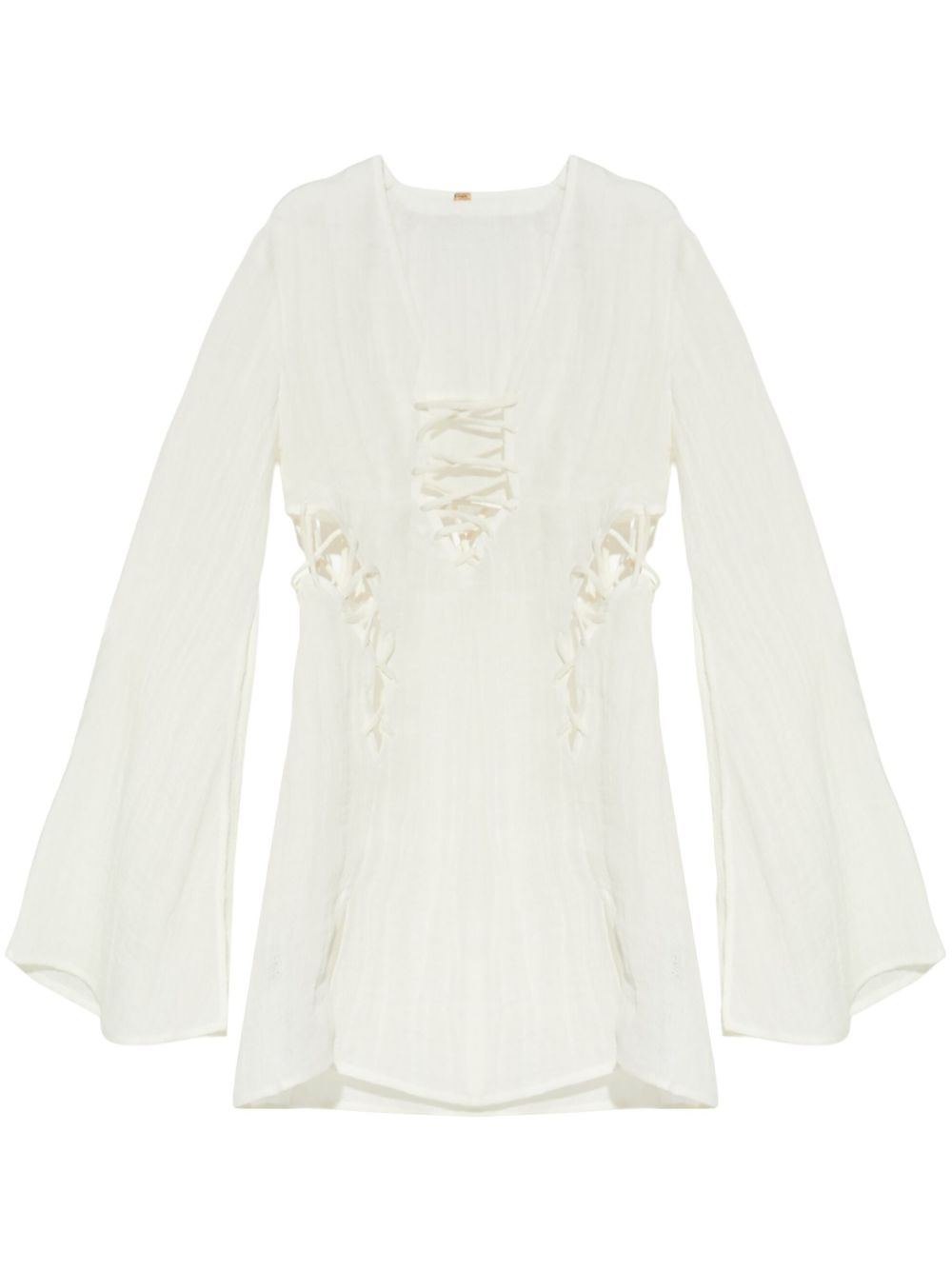 Ilona dress Highlights - White - Semi-sheer construction - Cut-out detailing - Short side slits - Flared design Imported Composition Linen/Flax 100%