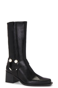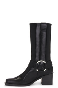 - Cow leather upper with manmade sole - Imported - Pull-on styling with side tabs - Nappa lining - Square toe with block heel - Approx 65mm/ 2.5 inch heel Approx 255mm/ 10 inch shaft Shaft measures approx 19" in circumference - Revolve Style No. CULG-WZ198 - Manufacturer Style No. BT2799LR3075