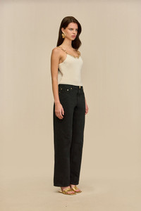A knit top featuring gold-toned chain detailing at the neckline. — Slightly cropped length — Sponge knit yarn — Gold-toned chain sewn into body — Figure hugging fabric SIZE & FIT NOTES Model is 5'10" and wearing a size Small COMPOSITION AND CARE 79% VISCOSE 21% NYLON