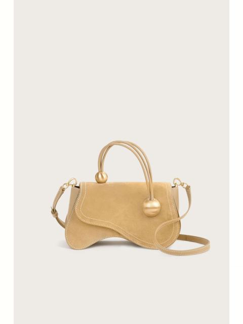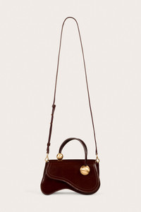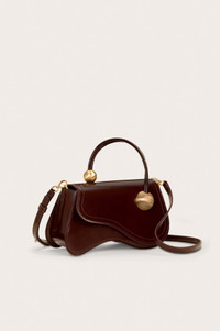 Preorder - Estimated Ship Date Between December 30th and January 13th A sculptural leather silhouette with a convertible crossbody strap with a magnetic snap and back pocket. — Patent leather — Removable crossbody strap — Roped top handle — Magnetic snap — Back pocket SIZE & FIT NOTES 3.30" W x 5" H x 9.20" L COMPOSITION AND CARE 100% COW LEATHER LINING: 50% NYLON 50% VEGAN LEATHER