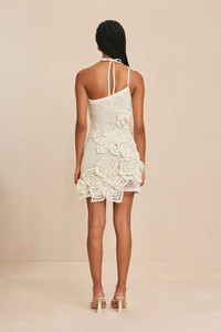A hand-crocheted, mini-dress with large, three-dimensional knit floral motifs.- Ties behind the neck- Lined- Open knit- One shoulder SIZE & FIT NOTES p.p1 {margin: 0.0px 0.0px 0.0px 0.0px; font: 13.0px 'Helvetica Neue'} Model is 5'10" and is wearing a size Small. Runs Short — We recommend sizing up for longer length. COMPOSITION AND CARE 100% Polyester