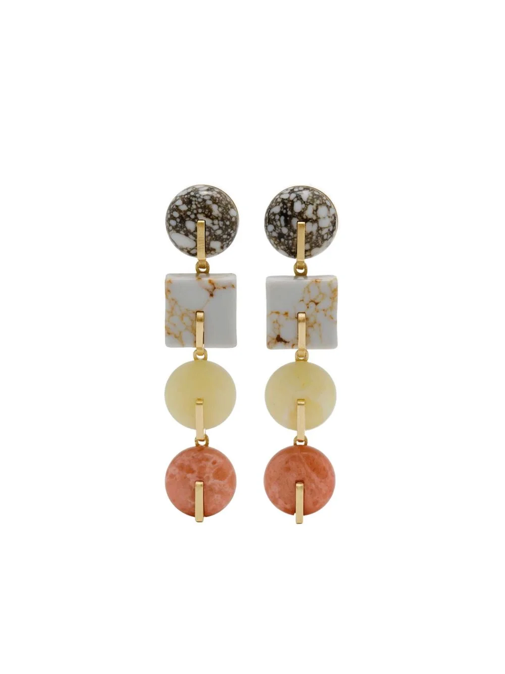 Gaia clip-on earrings Highlights - Gold - Resin stone embellishments - Square stone - Round stone - Drop design - Clip-on fastening - These earrings come as a pair. Imported