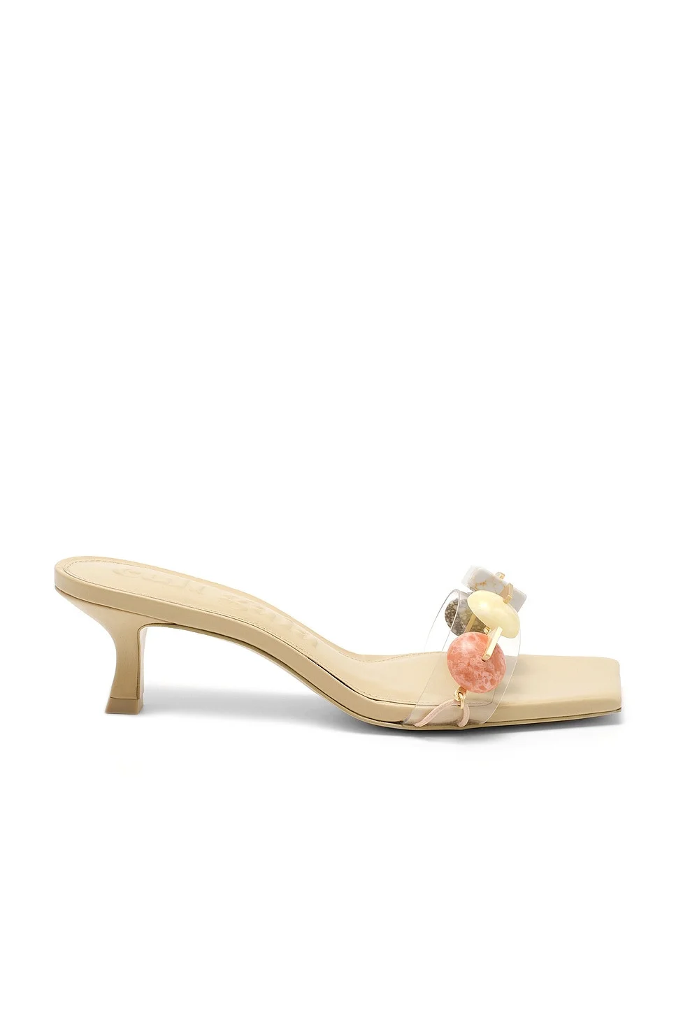 - TPU upper with leather sole - Imported - Slip-on styling - Leather lining - Multi-colored stone embellishments at strap - Square toe - Approx 55mm/ 2.17 inch heel - Revolve Style No. CULG-WZ191 - Manufacturer Style No. SD28820NP1252
